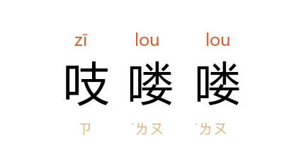 引《红楼梦》第一〇一回:“只听唿的一声风过,吹的那树枝上的落叶满园中唰喇喇的作响,枝梢上吱嘍嘍发哨,将那些寒鸦宿鸟都惊飞起来。”《儿女英雄传》第四回:“谁知那门的插关儿掉了,门又走扇,才关好了,吱嘍嘍又开了。”亦作“吱嘍”。 《红楼梦》第二六回:“忽听‘吱嘍’一声,院门开处,不知是那一个出来。”