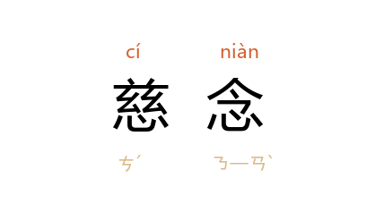 引《三国演义》第三七回:“﹝ 徐庶 ﹞曰:‘某幼逃难,流落江湖,偶至 新野,遂与 玄德 交厚。老母在此,幸蒙慈念,不胜愧感。’”《再生缘》第十六回:“緑林强盗无慈念,难保遭擒不丧身。”