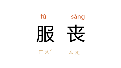 ⒈ 自己的长辈或平辈亲属等死后,遵照礼俗,在一定的期限内带孝,表示哀悼。