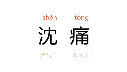 ⒈ 亦作“沉痛”。深切的悲痛。深沉痛切;深刻。