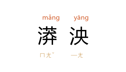 引明 王宠 《旦发胥口经湖中瞻眺》诗之一:“浑沌自太古,漭泱开 吴 天。”清 方文 《从黄俞邰借<宋遗民录>感旧》诗之一:“乾坤正漭泱,梨枣合重鐫。”清 魏源 《湖北堤防议》:“盖 大江 出峡,至 江陵 始漭泱横恣。”