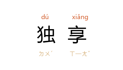 引《汉书·外戚传下·班倢伃》:“己独享兮高明,处生民兮极休。”颜师古 注:“享,当也。”宋 朱熹 《小学·嘉言》:“范文正公 为参知政事时,告诸子曰……若独享富贵而不恤宗族,异日何以见祖宗於地下,今何颜入家庙乎?”许地山 《空山灵雨·债》:“世间若有一个人吃不饱足……我也不敢公然独享这具足的生活。”