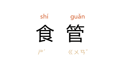 ⒈ 人和动物连接咽头和胃的管状器官。食物经口腔从咽头进入食管,管壁肌肉收缩时可将食物送到胃里。