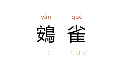 引《禽经》:“鷃雀啁啁,下齐众庶。”《楚辞·王逸<九思·疾世>》:“鷃雀列兮譁讙,鴝鵒鸣兮聒余。”注:“鷃雀,小鸟,以喻小人列位也。”