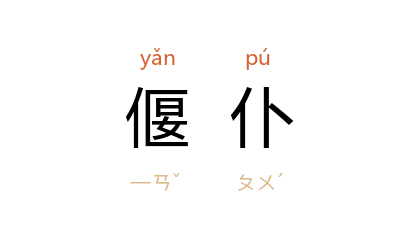 引《魏书·韩茂传》:“时有风,诸军旌旗皆偃仆, 茂 於马上持幢,初不倾倒。”明 徐弘祖 《徐霞客游记·游嵩山日记》:“少林 松柏俱修伟,不似 岳庙 偃仆盘曲。”