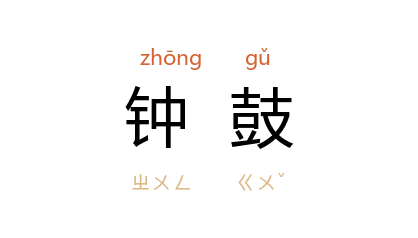 1. 钟和鼓。古代礼乐器。 汉 贾谊 《新书·数宁》:“使为治,劳知虑,苦身体,乏驰骋鐘鼓之乐,勿为可也。”