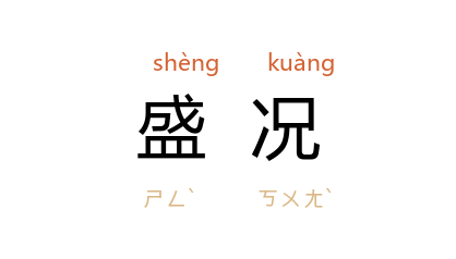 引叶圣陶 《倪焕之》十:“这种盛况,近年来简直不曾有过。”徐迟 《牡丹》二:“盛况空前, 汉口 为之不夜。”