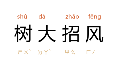 《金瓶梅词话》第四八回:“树大招风风损树,人为名高名丧身。”