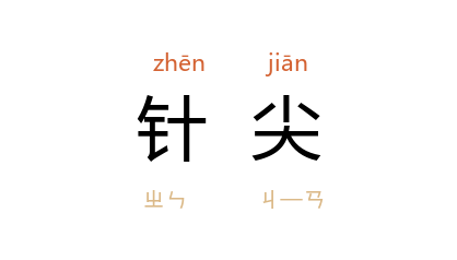 引清 王夫之 《示子侄》:“袖中挥拳,针尖竞利,狂在须臾,九牛莫制。”聂绀弩 《谈杂文》:“他们的视野既小如针尖,又不敢正眼凝视现实。”