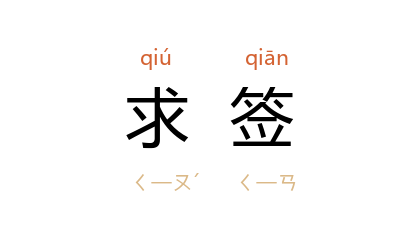 ⒈ 在神佛前祈祷祭拜,抽签以占卜吉凶。