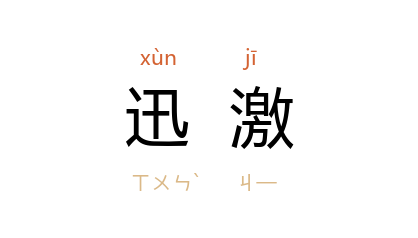 引晋 郭璞 《江赋》:“衝 巫峡 以迅激,躋 江津 而起涨。”《晋书·桓玄传》:“玄 入 建康 宫,逆风迅激,旍旗仪饰皆倾偃。”唐 司空图 《说鱼》:“蒲 之东七十里,山秀而瘠,故其水迅激,不能蓄鬐介之族。”