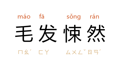引《红楼梦·第一〇一回》:「虽然毛发悚然,心中却也明白。」