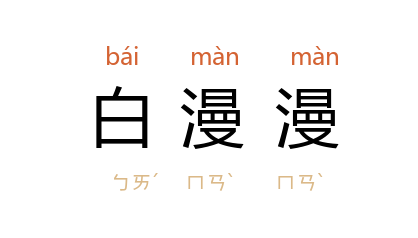 引明 无名氏 《宫词》曲:“登楼倚阑看暮景,白漫漫天阔云平。”《红楼梦》第十三回:“只这四十九日, 寧国府 街上一条白漫漫人来人往,花簇簇官去官来。”《再生缘》第二十回:“红艷艷,桃李争春迎旭日;白漫漫,梨花开傍粉墙边。”瞿秋白 《赤都心史》五:“天天是凄清惨淡的天色,一片白漫漫的青影,到底使人烦闷。”