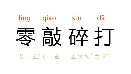 例如:「他这样零敲碎打的,一点系统也没有。」