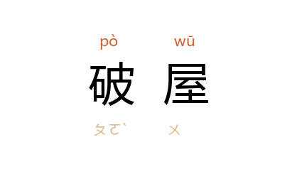 引唐 孟郊 《秋怀》诗之四:“秋至老更贫,破屋无门扉。一片月落牀,四壁风入衣。”宋 苏轼 《纸帐》诗:“锦衾速卷持还客,破屋那愁仰见天。”《宋史·隐逸传下·刘愚》:“﹝ 徐氏 ﹞遂归于 愚,居破屋中,一事机杼。”