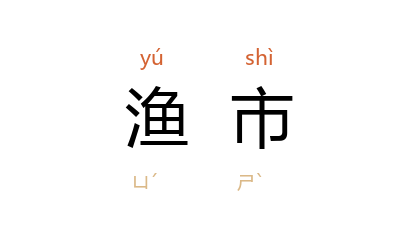 引前蜀 李珣 《南乡子》词:“渔市散,渡船稀, 越 南云树望中微。”宋 陆游 《长相思》词:“侧船蓬,使江风,蟹舍参差渔市东。”