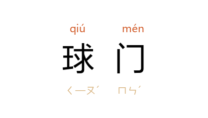 ⒈ 球场两边作为射球目标的门框。如足球、曲棍球的球门,球射入对方球门即得分。