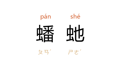 ⒈ 亦作“蟠蛇”。盘曲的蛇。