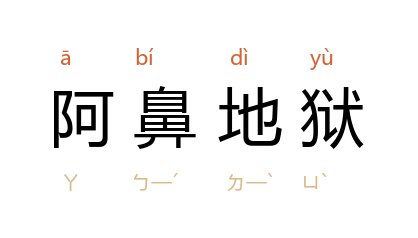 ⒈ 佛教宇宙观中地狱中最苦的一种。为胡语音义合译,意为无间。堕落到此的众生受苦无间断,故称为「无间」。为八大地狱中的第八狱。