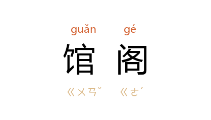 ⒉ 北宋 有昭文馆、史馆、集贤院三馆和秘阁、龙图阁等阁,分掌图书经籍和编修国史等事务,通称“馆阁”。 明 代将其职掌移归翰林院,故翰林院亦称“馆阁”。 清 代沿之。