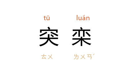引逋 虽变突为团,亦其谬也。”宋 洪迈 《容斋三笔·切脚语》:“世人语音有以切脚而称者,亦间见之於书史中。如以‘蓬’为‘勃笼’……‘团’为‘突欒’。”宋 王庭珪 《宁公端惠蒲团》诗:“正忧坐客寒无席,遗我新蒲入突欒。”