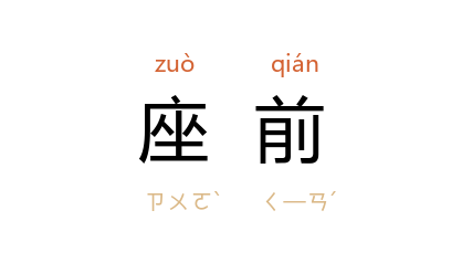 宋 孔平仲 《孔氏谈苑》卷五:“自卑达尊,例云座前,尤非也。閤下降殿下一等,座前降几前一等,岂可僭用哉!”