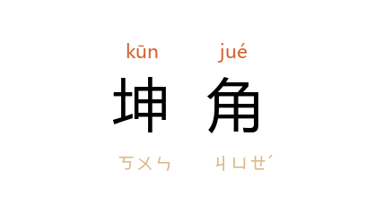 引老舍 《茶馆》第二幕:“现在,人家总长次长,团长师长,要娶姨太太讲究要唱落子的坤角,戏班里的女名角,一花就是三五千大洋!”杨朔 《三千里江山》第十六段:“同志们,你们爱不爱听戏?我们这儿有位坤角,南北驰名,青衣花旦,欢迎她来一段好不好?”