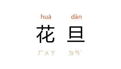 引明 胡应麟 《少室山房笔丛·庄岳委谈下》:“所谓装旦,即今正旦也;小旦,即今副旦也。以墨点破其面,谓之花旦。”