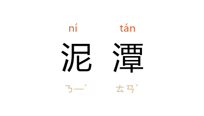引李广田 《记问渠君》:“这时候,到处都是麻的气息,野外的,家里的,埋在泥潭里的,剥在场上的,而且那气息也并不讨厌。”叶圣陶 《城中·微波》:“她本来自觉是翱翔天空的自由的鸟儿,现在可掉下来了,直掉入深深的泥潭。”