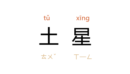 ⒈ 行星名。距离太阳第六近的行星,目前已知有六十余颗卫星,有明显行星环。属于类木行星,外观呈黄棕色,大气成分主要为氢和氦。古代称为「镇星」、「填星」、「信星」。