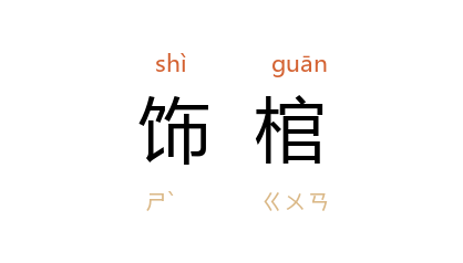 引《左传·文公十五年》:“齐 人或为 孟氏 谋,曰:‘ 鲁,尔亲也。饰棺寘诸 堂阜,鲁 必取之。’”杜预 注:“饰棺不殯,示无所归。”杨伯峻 注:“古人于死人之棺木及其载柩之车,依天子、诸侯、大夫、士之不同,而有不同之装饰,谓之饰棺。”《礼记·丧大记》:“饰棺:君龙帷,三池,振容,黼荒,火三列,黻三列,素锦褚,加伪荒……皆戴圭,鱼跃拂池。”