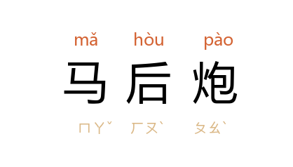 ⒈ 亦作“马后炮”。原为象棋术语。借喻不及时的举动。