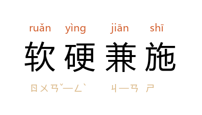 例如:「这次会议我方代表软硬兼施,终于使对方代表让步而达成协议。」