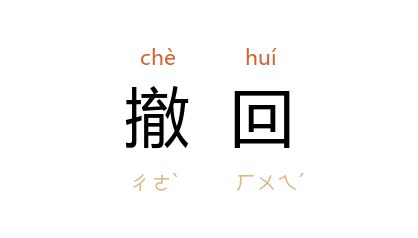 ⒉ 收回发出去的,常指收回所说的话或对某人不信任的暗示。