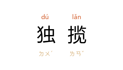 例如:「他独揽了整个公司的人事,连经理也没法子做调度。」