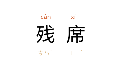 引唐·白居易〈代书诗一百韵寄微之〉诗:「残席諠哗散,归鞍酩酊骑。」《红楼梦·第五四回》:「众媳妇们忙撤去残席,里面直顺并了三张大桌,另又添换了果馔摆好。」
