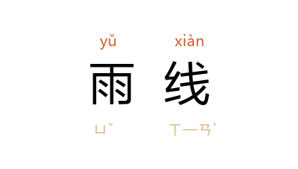 ⒈ 见“雨线”。亦作“雨綫”。看上去如线状的雨。