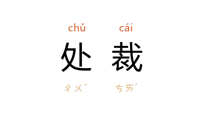 引元 吴昌龄 《张天师》第四折:“他救我元无意,我见他有甚歹?寃哉,怎将俺这一火同禁害?诉的明白,望仙尊别处裁!”《东周列国志》第四四回:“今使 詹 听罪於幕下,惟君侯处裁!”《再生缘》第十四回:“不言左右朝班内,且説那殿上君王怎处裁。”
