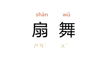 ⒈  以扇为舞具的舞蹈。如古时南朝梁的鞞扇舞,今时的采茶扑蝶舞等。