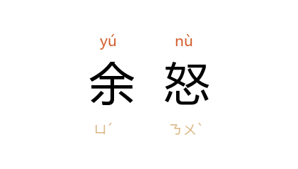 引晋 潘岳 《西征赋》:“望 渐臺 而扼腕,梟巨猾而餘怒。”清 王韬 《淞滨琐话·魏月波》:“见妻犹坐中庭,颐指气使,餘怒未平。”