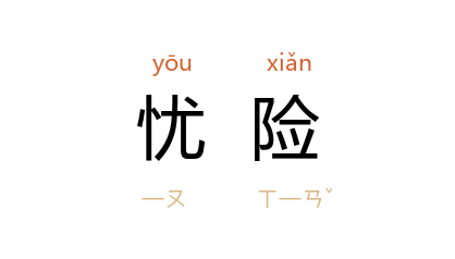 引《荀子·荣辱》:“安利者常乐易,危害者常忧险。”王念孙 《读书杂志·荀子一》:“险以心言,非以境言,忧险犹忧危,谓中心忧危之也。”