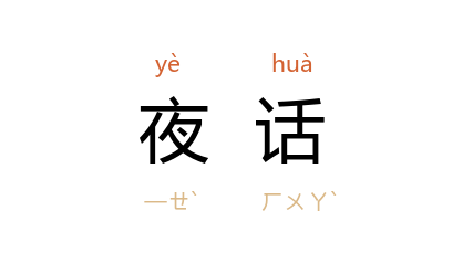 引唐 白居易 《招东邻》诗:“小榼二升酒,新簟六尺牀。能来夜话否?池畔欲秋凉。”宋 苏轼 《答周循州》诗:“未敢扣门求夜话,时叨送米续晨炊。”《二十年目睹之怪现状》第四五回:“我便在帐房里设了榻位,从此和 述农 联床夜话。”