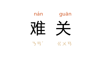 例如:「生死难关」、「希望公司可以顺利的渡过难关,解除倒闭的噩运。」