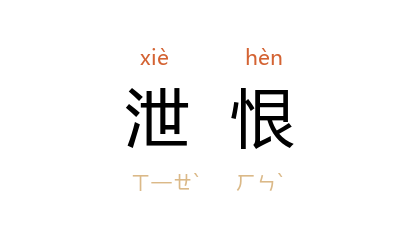引清 李玉 《一捧雪·谊潜》:“一登甲第,洩恨报仇,未为晚也。”犹解恨。 韩北屏 《非洲夜会·不巧的巧遇》:“看来似乎因为这片草地不属于他,所以要狠狠地破坏了才泄恨。”