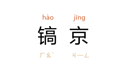 ⒈ 古地名。位于今陕西省长安县西南,沣河东岸,简称为「镐」。为周武王建都的地方。