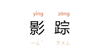 引《二刻拍案惊奇》卷二一:“眼见得 开河集 上地方没影踪,我明日到 济寧 密访去。”茅盾 《子夜》六:“林佩珊 已经跑得全无影踪。”乌兰巴干 《草原上的驯马姑娘》:“我朝四面眺望,仍然不见 阿拉坦琪琪 的影踪。”