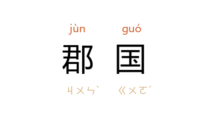 ⒈ 郡和国的并称。 汉 初,兼采封建及郡县之制,分天下为郡与国。郡直属中央,国分封诸王、侯,封王之国称王国,封侯之国称侯国。 南北朝 仍沿郡、国并置之制,至 隋 始废国存郡。后亦以“郡国”泛指地方行政区划。