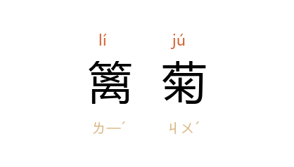 引语本 晋 陶潜 《饮酒》诗之五:“採菊东篱下,悠然见 南山。”唐 刘长卿 《九日题蔡国公主楼》诗:“篱菊仍新吐,庭槐尚旧阴。”唐 白居易 《履道新居》诗:“篱菊黄金合,窗筠緑玉稠。”