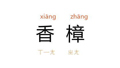 ⒈ 植物名。樟科樟属,常绿乔木。叶为椭圆形,圆锥花序腋生,花被六枚,黄绿色。木质有香气,能避虫害,叶和枝条能提制樟脑,木材可供建筑、制箱柜等。分布于我国长江以南各省、日本、琉球、印度等地。