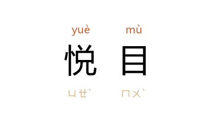 ⒈ 愉悦眼目,好看。